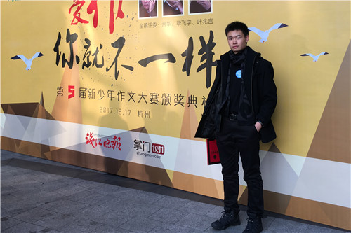 12月17日,第五届全国新少年作文大赛在杭州落下帷幕。此次作文大赛共颁出1个特等奖,9个一等奖,15个二等奖,30个三等奖。最终,来自我校高二(1)班的杨云起同学征服了评委老师,荣获全场唯一的特等奖。