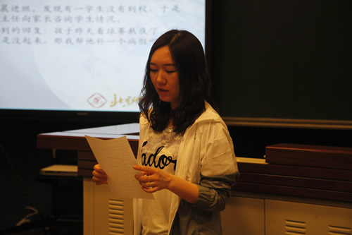 此次活动的最后一个环节是案例分析,两个真实情景的再现引起了在场青年班主任的热烈讨论,小组汇报之后,于渊老师又结合了她的实战经验给出了较为到位的点评和指导。