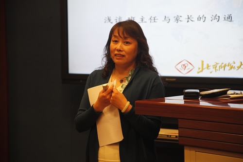 促进一个年轻人的职业成长最有效的办法,无疑是站在前辈的肩膀上虚心向上。因此,此次论坛还邀请到了我校紫禁杯优秀班主任的获得者于渊老师为大家带来了一场关于如何和家长沟通的专题讲座。如何与家长正面交锋?如何引领家长和学校积极合作?如何搭建家校合作的桥梁?如何准备家长会?于老师有的放矢地从青年班主任与家长沟通时的困惑切入,结合大量真实生动的案例,向我们深入浅出地讲解了与家长沟通的原则、技巧和方式等问题。