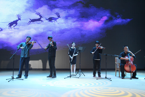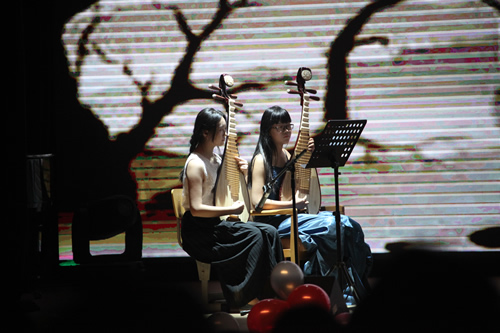 学校领导在百忙之中为同学们送来了最亲切的节日祝福,学校金帆舞蹈团原创舞蹈《飞翔吧!梦想!》点燃了同学们的激情,各年级组老师精心准备的节目更是让整个礼堂沸腾。今年的联欢会主要有三大亮点,一是社团节目丰富,阿卡贝拉社、室内管弦乐社、流行音乐社、传统文化社等均打破了班级、年级的界线,以社团为单位在各年级进行展演,受到了全校师生的热烈欢迎。二是节目类型更加丰富,尤其是增加了很多关于中国传统文化的节目,如古琴、昆曲、京剧、琵琶、笛子等,展现了附中学子对中国传统艺术形式的理解与传承。第三大亮点,学生的节目不再局限于展现个人才艺,而更多诉说他们的思想与情怀。初一年级原创情景剧《日常》、初三年级原创歌曲《这三年有你》、高一年级原创歌曲《7的故事》、高二原创歌曲《致我们曾经的一班》和街舞《旋转吧!钱班》都表达出学生们对附中的深深热爱。感情高二年级《wake me up when September end》唱出了对法国遭受恐怖袭击事件的态度以及对和平的热爱。初二年级《明天会更好》唱出了对世界的美好祝福!