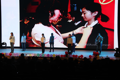 2014年12月29日-31日,附中校园内欢歌笑语,初一至高二各年级在开云电子网站 礼堂举办联欢会,喜迎新年。由学生会同学精心布置的礼堂、动感而富有节日气息的背景与绚丽多变的灯光,让人喜气洋洋;悠美的歌声、劲爆的舞蹈、令人捧腹大笑的相声、或原创或改编的小品等丰富多彩的表现形式汇成了节日的祝福在校园内飞扬。