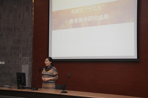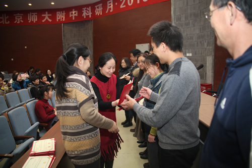 五位老师的发言对与会老师的启发很大。在科研月闭幕式环节,王莉萍校长、许建勇书记、顾咏梅副校长为北京市紫金杯班主任、西城区优秀班主任、西城区“十二五”教育教学研究成果获奖团队和教师个人颁奖。这也是对教师们开展教育教学研究活动的极大肯定。科研室郑一丹老师在最后的总结环节,借用李镇西老师对苏霍姆林斯基的评价——他毕生所开展的教育科研首先不是呕心沥血的脑力劳动,而是和孩子一起摸爬滚打的体力付出。鼓励老师们多关注教育教学中的实际问题,开展相应的研究工作,并适时将研究成果提炼总结。学校今后也将为老师们搭建更多的沟通平台,供老师们学习交流,形成以研究促教育教学发展的良好局面。
