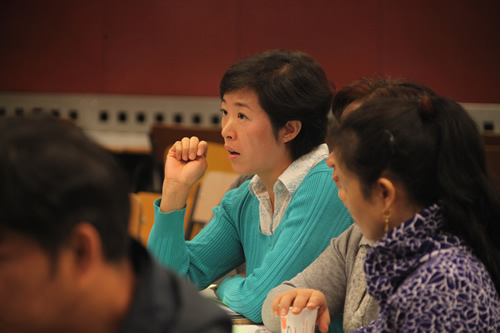 “左抓右逃”的热身活动让一个个成年人仿佛回到了童年,做起了游戏,家长们很快熟悉并活跃起来。心理教师王晓菁老师带领家长们通过情景讨论、角色扮演、观点汇聚等环节提出自己亲子沟通过程中遇到的困惑,分享和学习彼此的经验。王晓菁老师介绍了高中阶段亲子沟通的特征,康莉老师向家长们呈现了会前的学生调查结果,启发家长关注学生感受和亲子沟通的有效性。王晓菁老师还从专业方面给出做好亲子沟通的建议。最后,教导处况莉主任借用了诗人纪伯伦的经典诗歌《你的儿女》对活动进行了总结。
