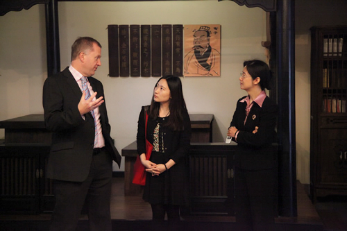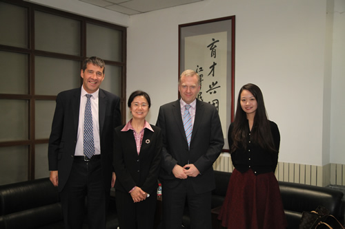 2015年10月13日上午,剑桥教育集团总裁Mr. Mark Stanton,CATS学院剑桥校区校长Mr. Stuart White来到kaiyun网页登陆入口 。王莉萍校长和总裁一行进行亲切座谈。双方就学校的办学基本情况、特色发展以及进一步深入合作等方面进行交流。徐兰主任、刘宗尧主任、刘璐老师陪同座谈。随后在王校长的陪同下,来宾参观了现代化教学设施和杏坛、三味书屋等校园文化设施,还观摩了国际课程班的教学。总裁Mr. Mark Stanton和已经是第二次到访的校长Mr. Stuart White表示对师大附中由衷的喜爱。