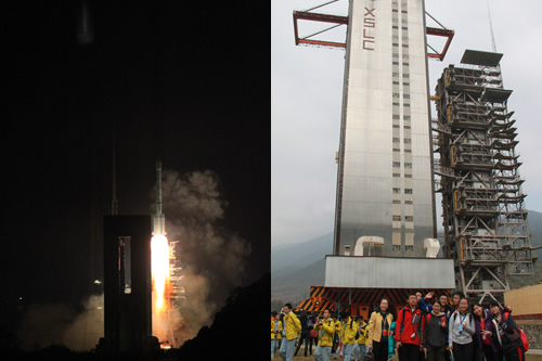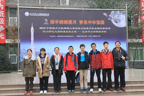 我校是北京青少年科技创新学院“翱翔计划”物理和地球科学领域第一批基地校和生源校。2013年11月30日至12月4日,我校“翱翔计划”部分学员及相关教师赴“月城”(西昌)参加由中科科技培训中心联合中国探月工程相关单位共同举办的“携手嫦娥落月,梦系中华强国”——中国探月工程嫦娥三号任务大型青少年主题科学活动,开展“嫦娥三号”发射观摩与科学考察培训活动。同学们亲临现场,了解了发射中心的各种设备和发射准备情况,并于12月2日1时30分观摩“嫦娥三号”发射盛况,进一步深入了解了我国航天事业的进展。我校师生还在中科院专家指导下考察了当地的地质地貌、生物特性和生态环境,拓宽了科学视野,锻炼了能力。最后参加了四川师大附属圣菲小学的联谊活动。