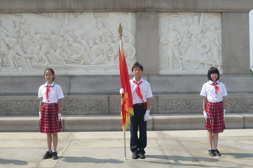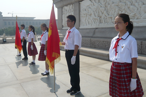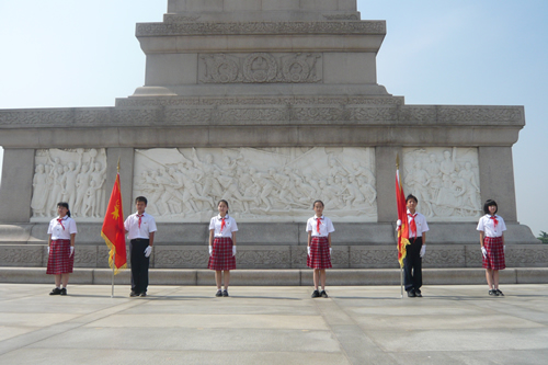 2010年6月21日,我校18名少先队员在校团委书记张帅老师、教导处刘文利老师的带领下来到天安门广场人民英雄纪念碑前站“首都少年先锋岗”。上午9点,站岗仪式正式开始。少先队员们身穿统一的校服,佩戴鲜艳的红领巾,以每次二组、每组三人的形式,守护在英雄纪念碑前。参加站岗的队员动作规范,表情肃穆,换岗时动作统一,队列整齐,充分展示了我校学生的良好精神风貌。