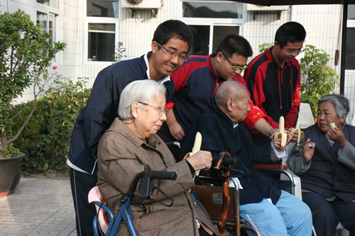 在学生志愿者的陪伴下,老人们度过了一个安静、祥和又充满温情的重阳节!该日的活动是我校常规性的活动之一,志愿者的关爱并不仅仅在节日里,我校学生志愿者长期坚持各类义务服务,已经成为附中校园文化中一项独特靓丽的风景线。相信这样的心灵洗礼,会让同学们关注社会,走进社会,学会感恩,学会奉献!